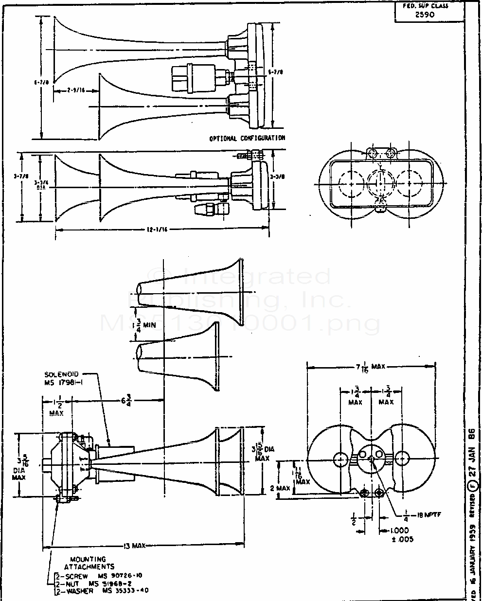 MS51301 Horn, Sound-Warning, Air-Actuated, Electrically Controlled, 12 Or 24 Volt Dc (Dual) (S/S By A-A-52525)
